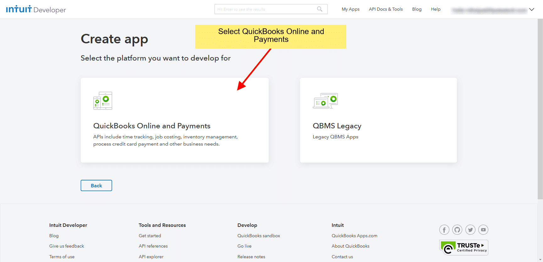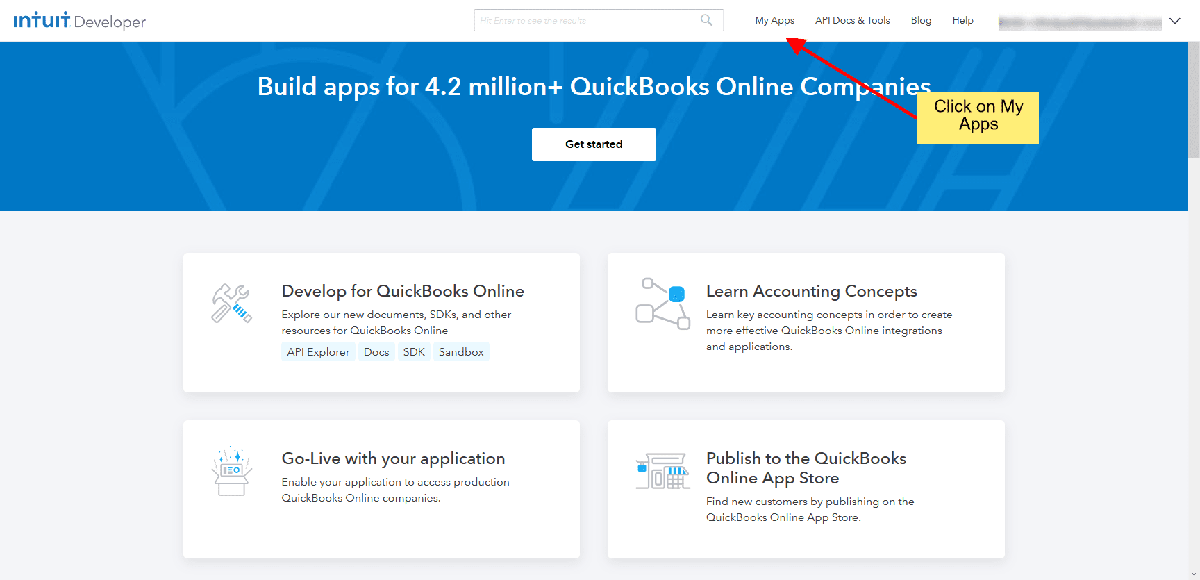 - You need to register your website as an App at Intuit Developer Site to do so follow the steps below.