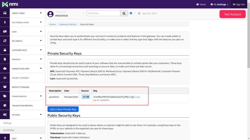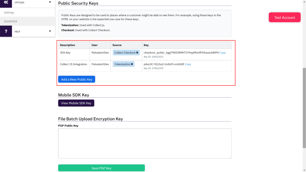 - For these, you need to click the Add a New Public Key button under the Public Security Keys.